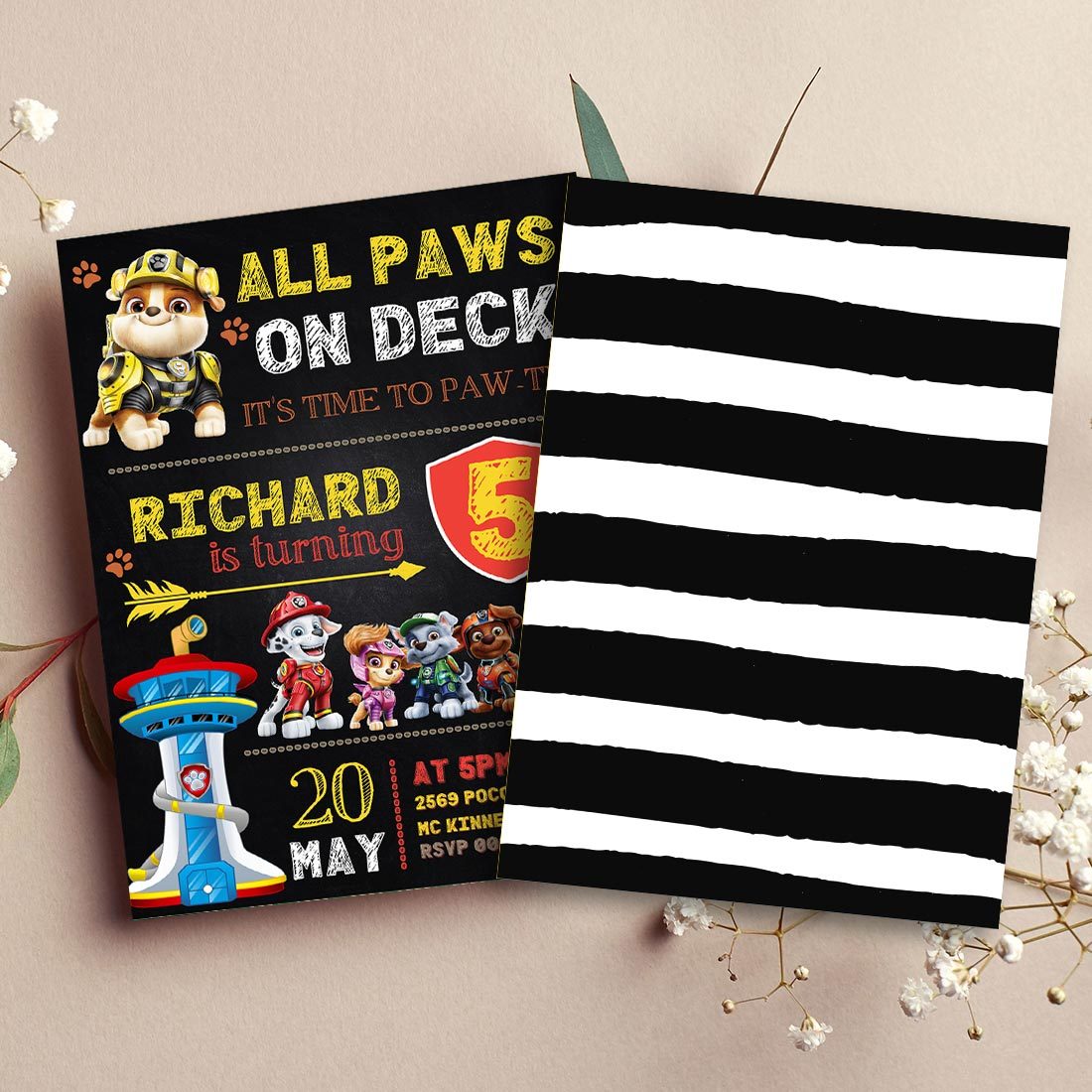 Paw Patrol Rubble ANY AGE Birthday Girl Invitation Comic Style Canva Editable Instant Download