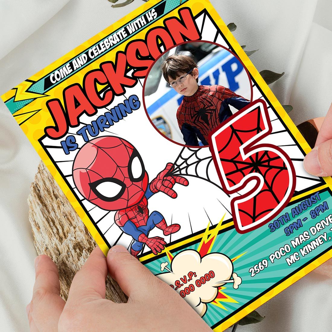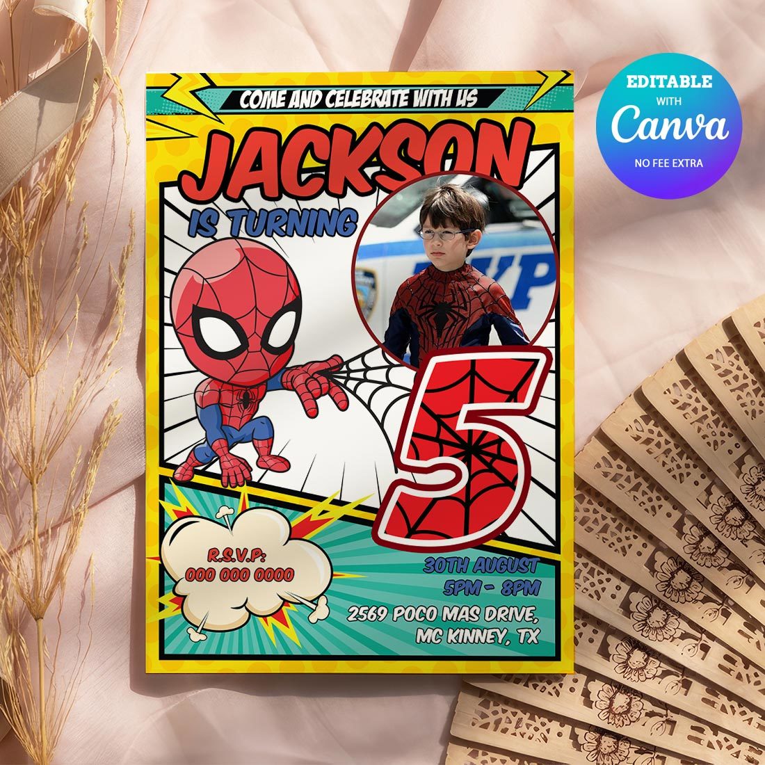 Spider Man Comic 5th Birthday Invitation, Birthday Boy Invitation Canva Editable Instant Download