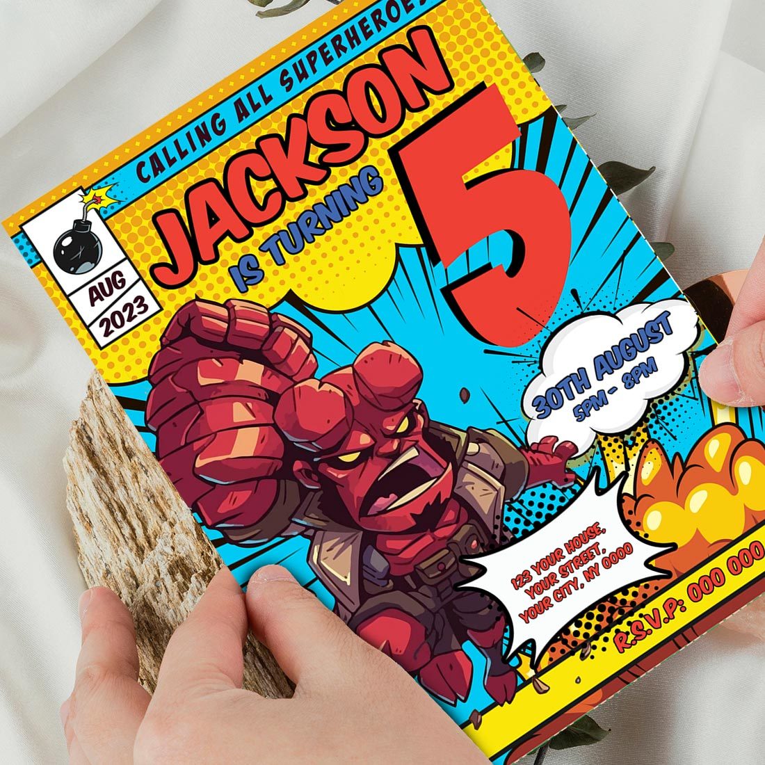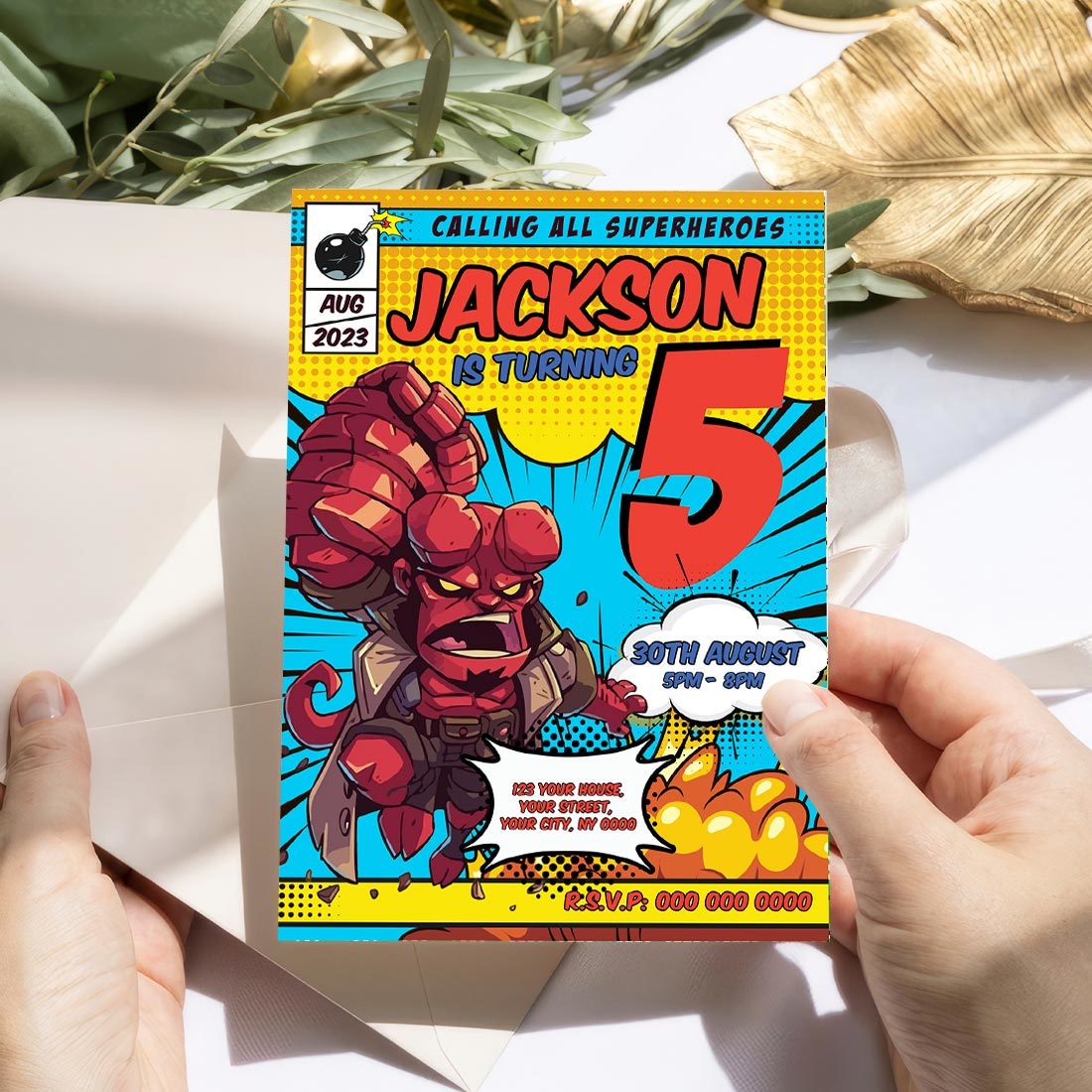 Hellboy ANY AGE Birthday Invitation Comic Style Canva Editable Instant Download