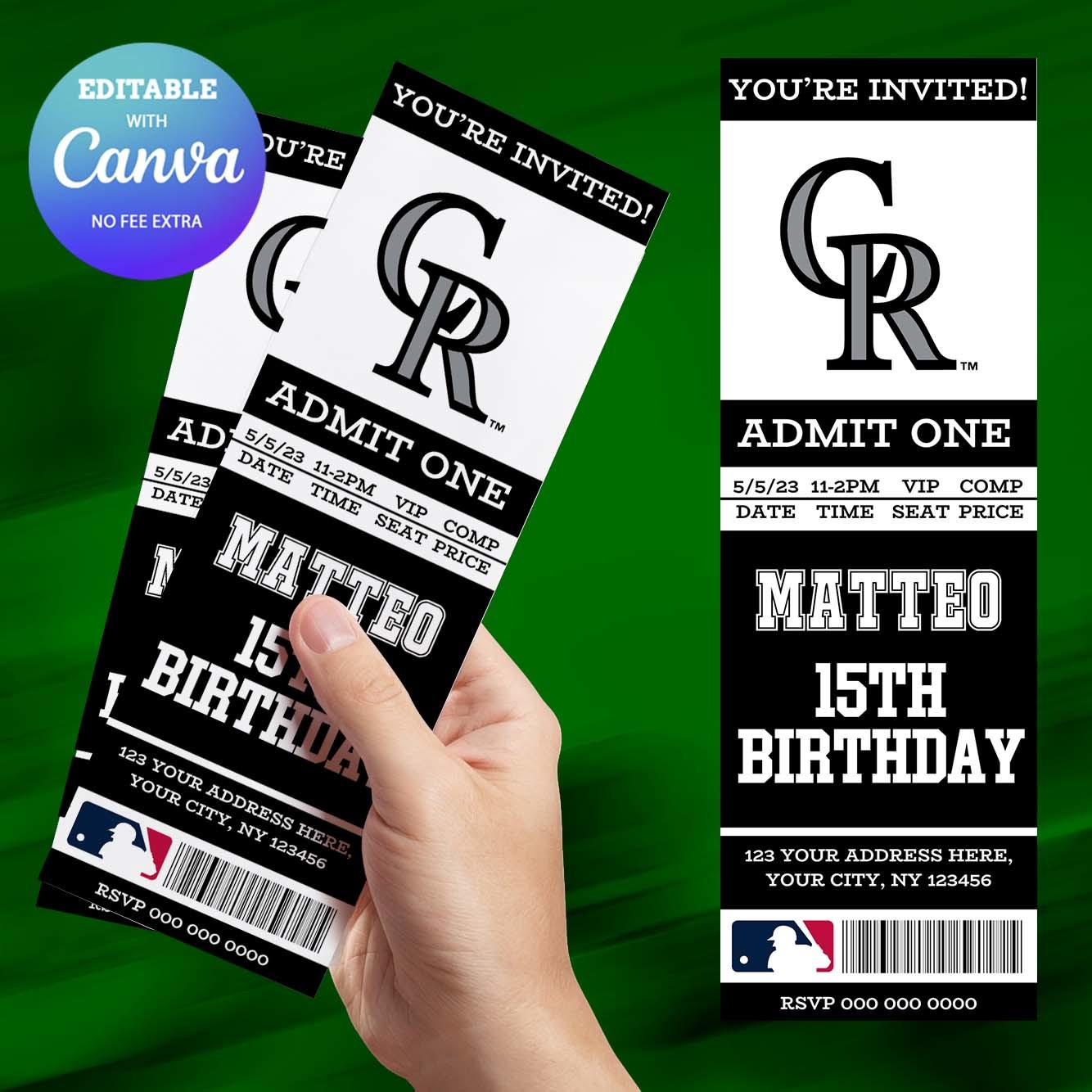 Colorado Rockies Birthday Ticket Invitation Canva Editable and Printable