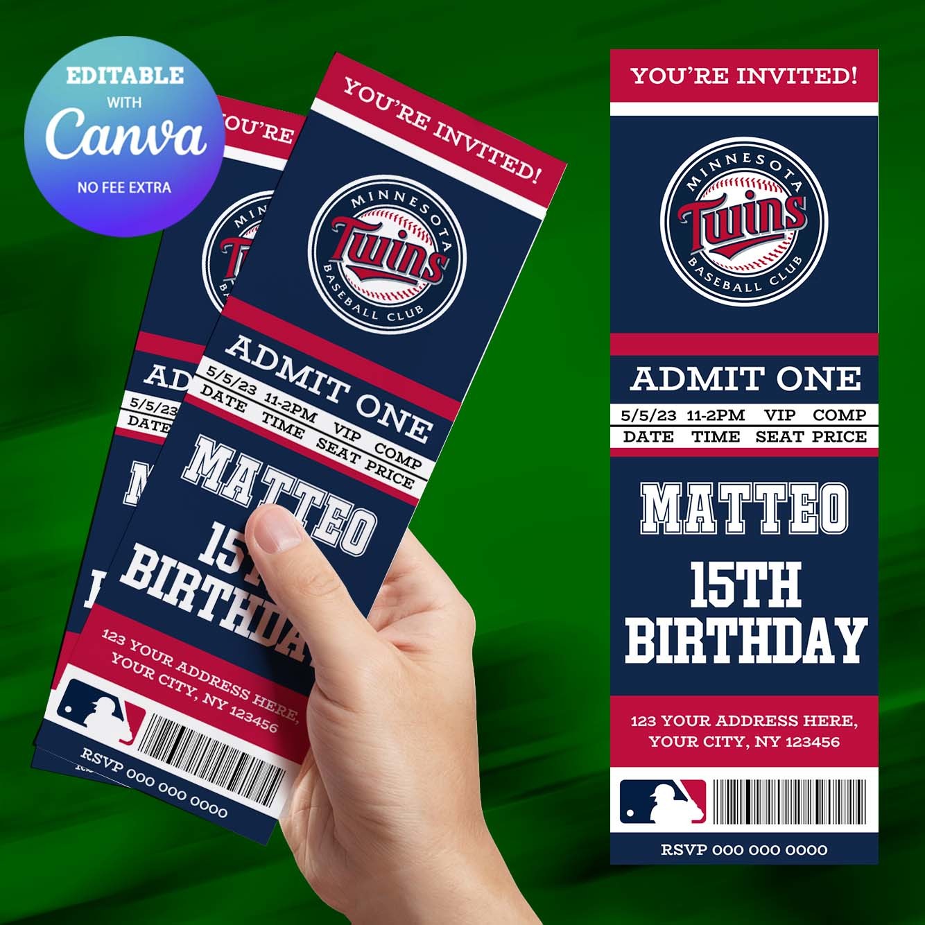 Minnesota Twins Birthday Ticket Invitation Canva Editable and Printable