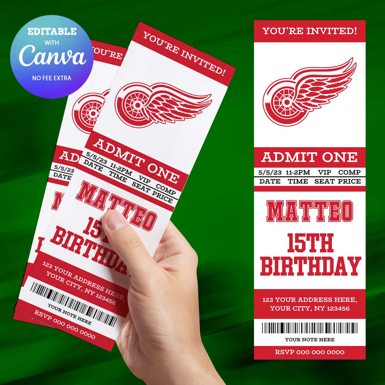 Detroit Red Wings Birthday Invitation, Hockey Birthday Invitation Canva Editable
