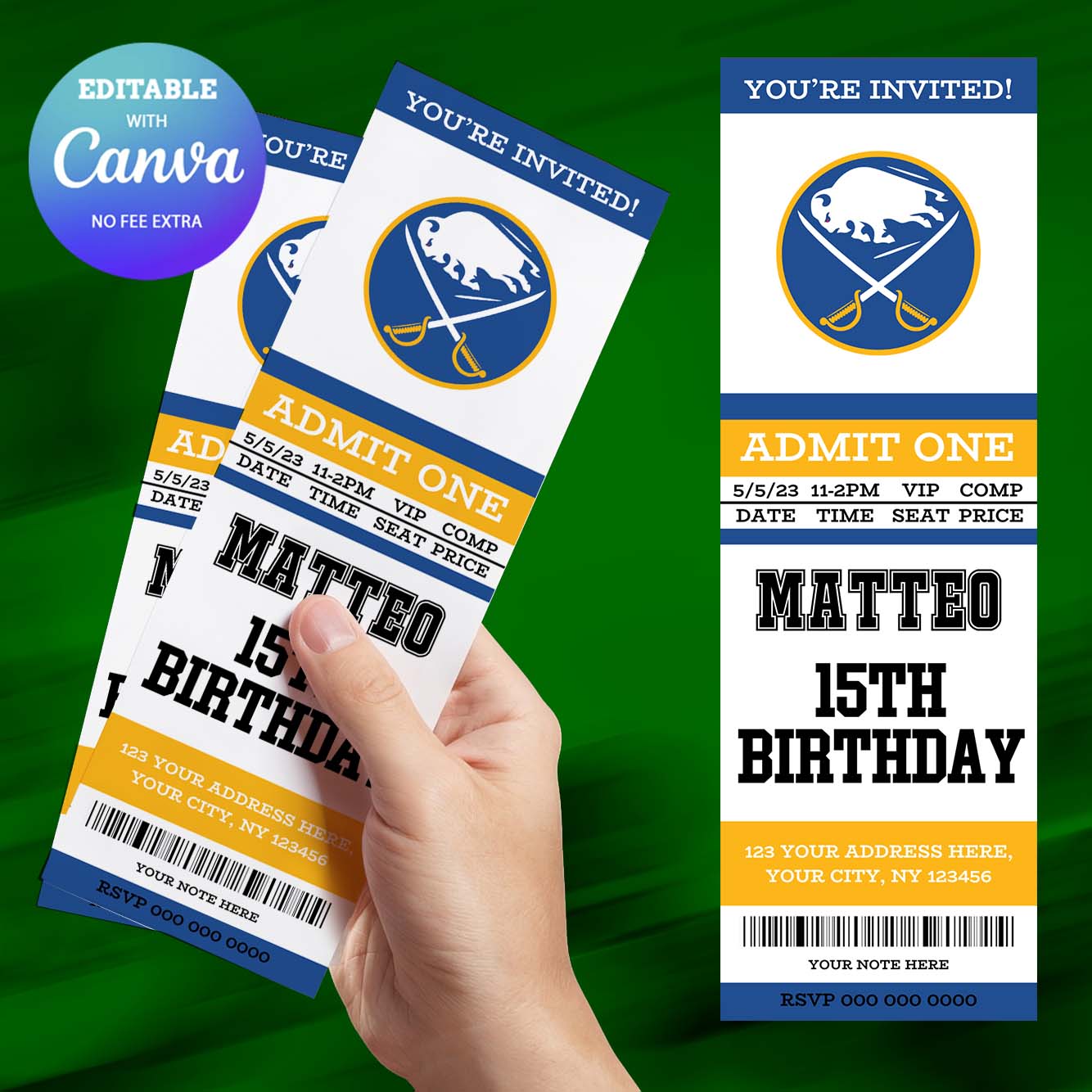 Buffalo Sabres Birthday Invitation, Hockey Birthday Invitation Canva Editable