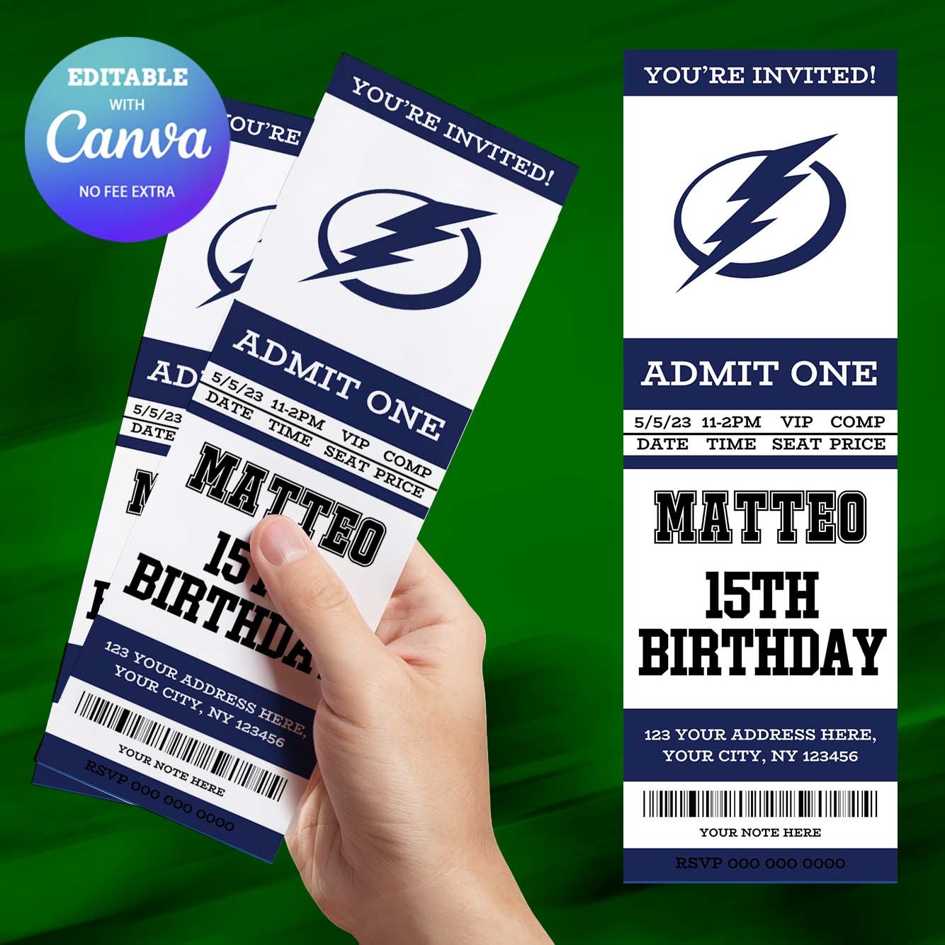 Tampa Bay Lightning Birthday Invitation, Hockey Birthday Invitation Canva Editable