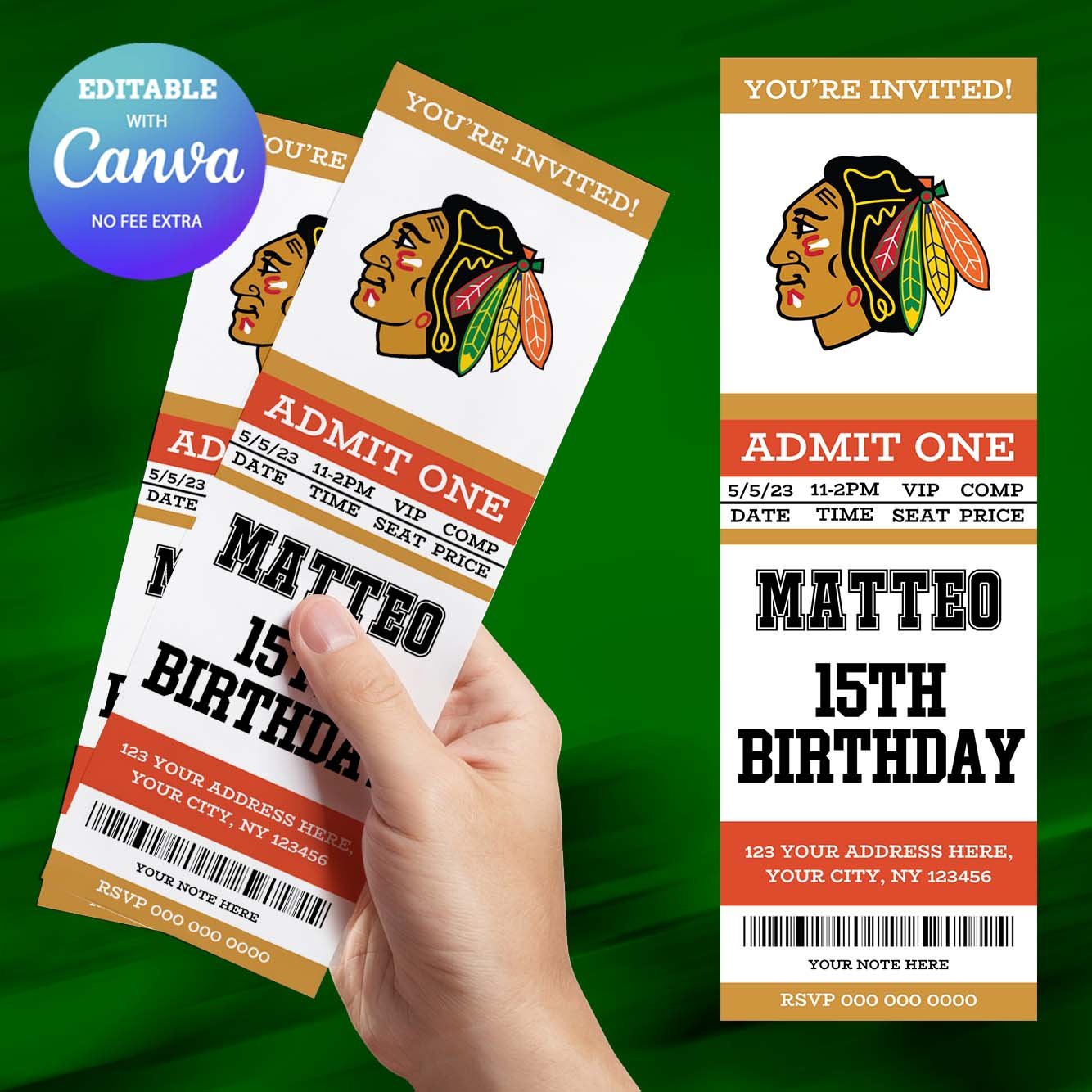 Chicago Blackhawks Birthday Invitation, Hockey Birthday Invitation Canva Editable