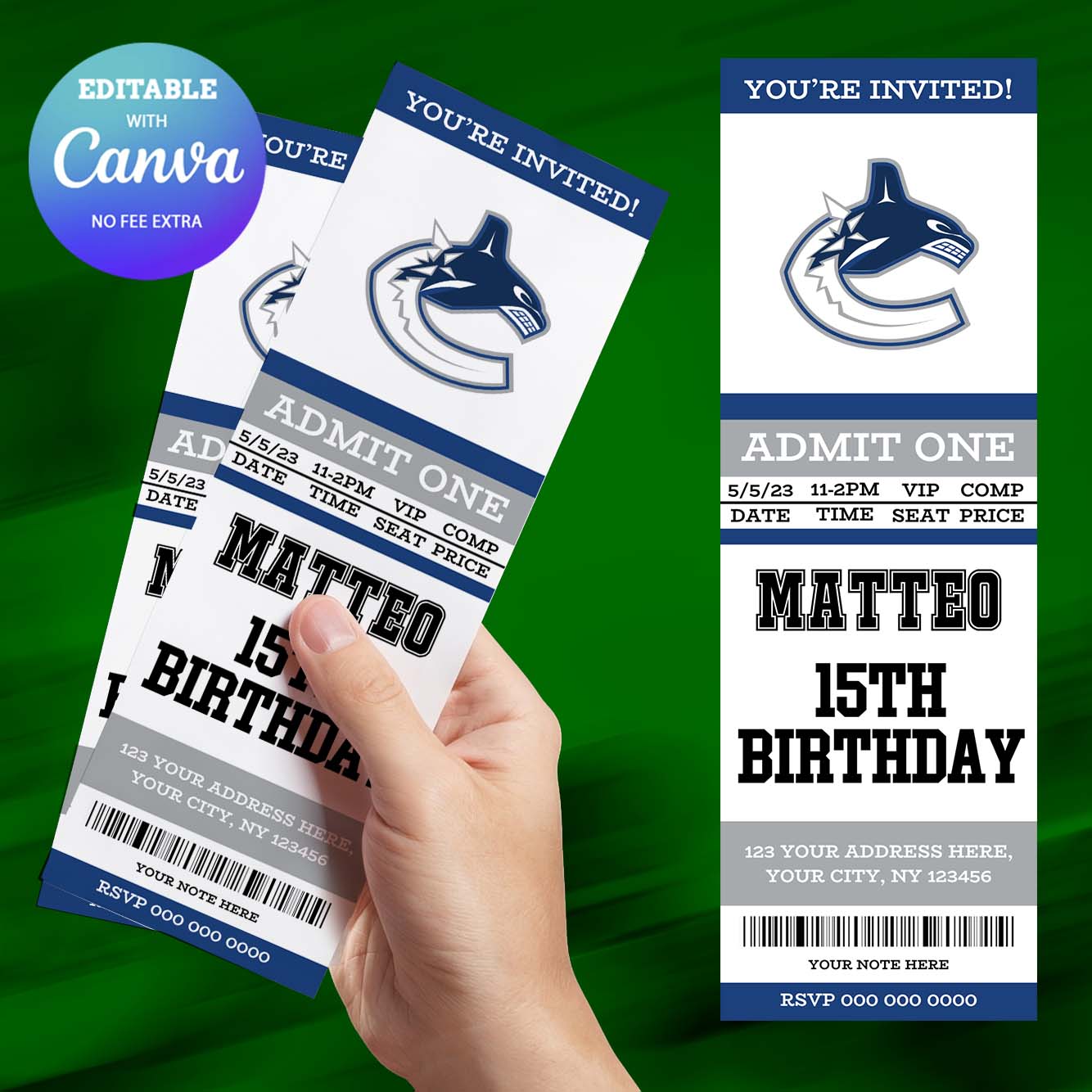 Vancouver Canucks Birthday Invitation, Hockey Birthday Invitation Canva Editable