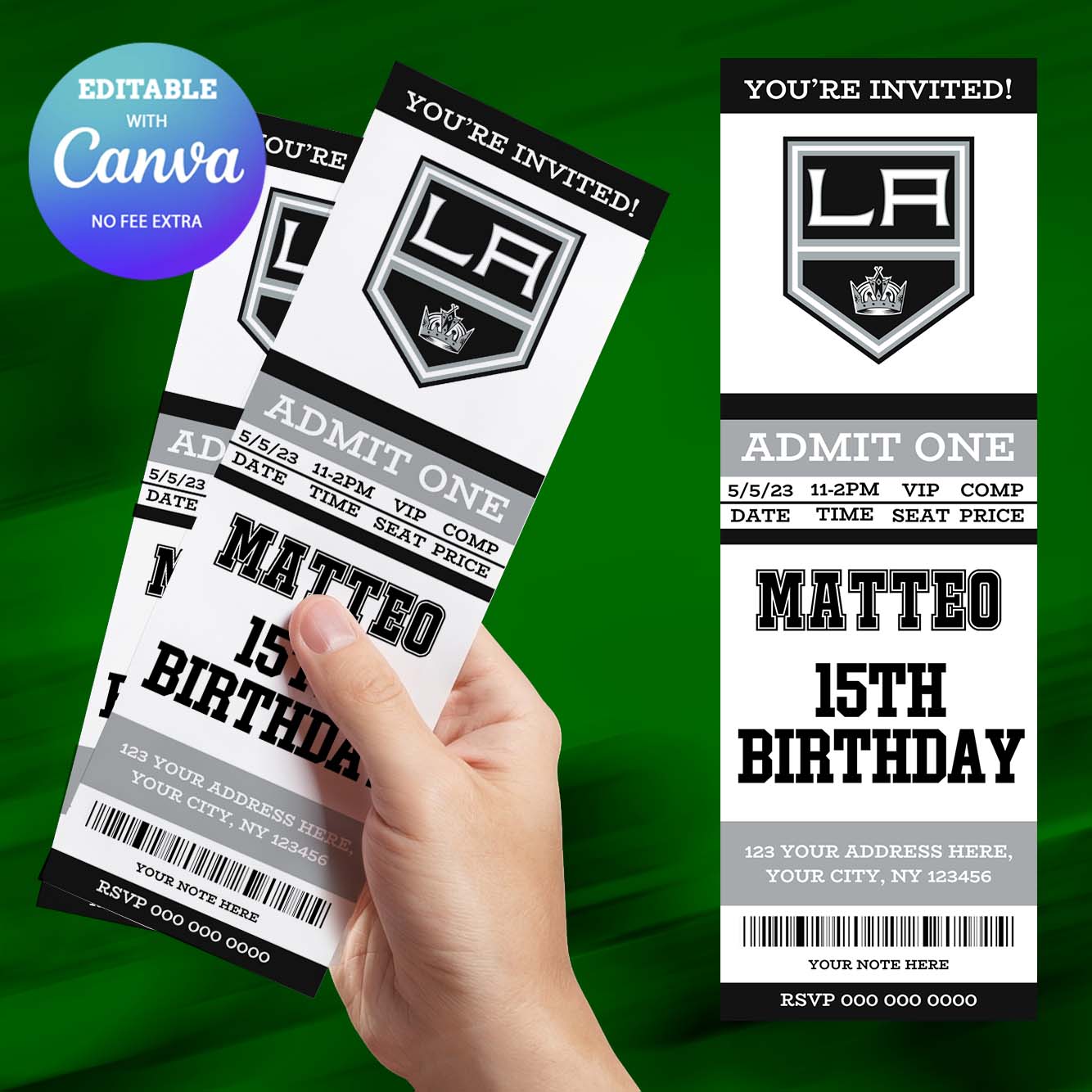 Los Angeles Kings Birthday Invitation, Hockey Birthday Invitation Canva Editable
