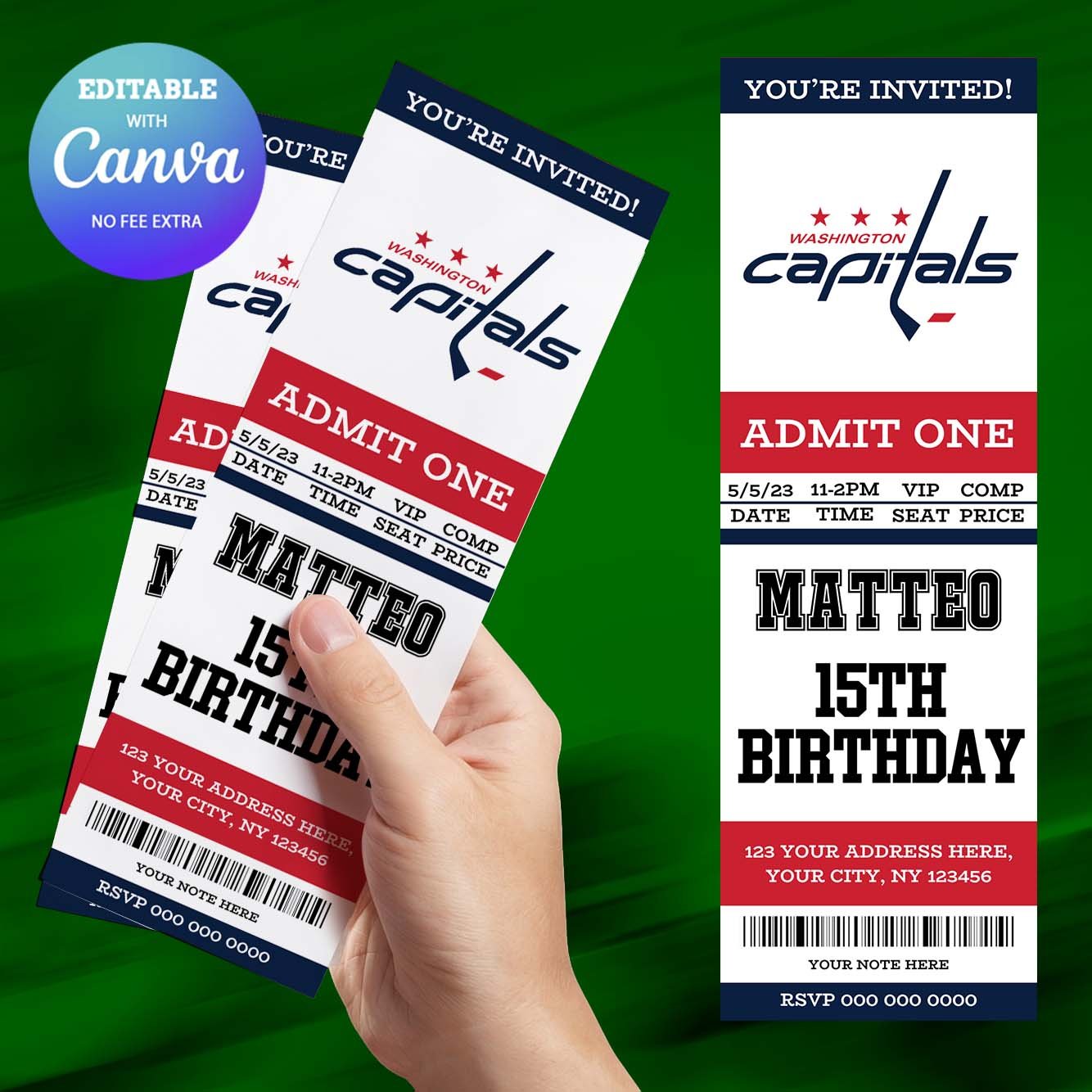 Washington Capitals Birthday Invitation, Hockey Birthday Invitation Canva Editable