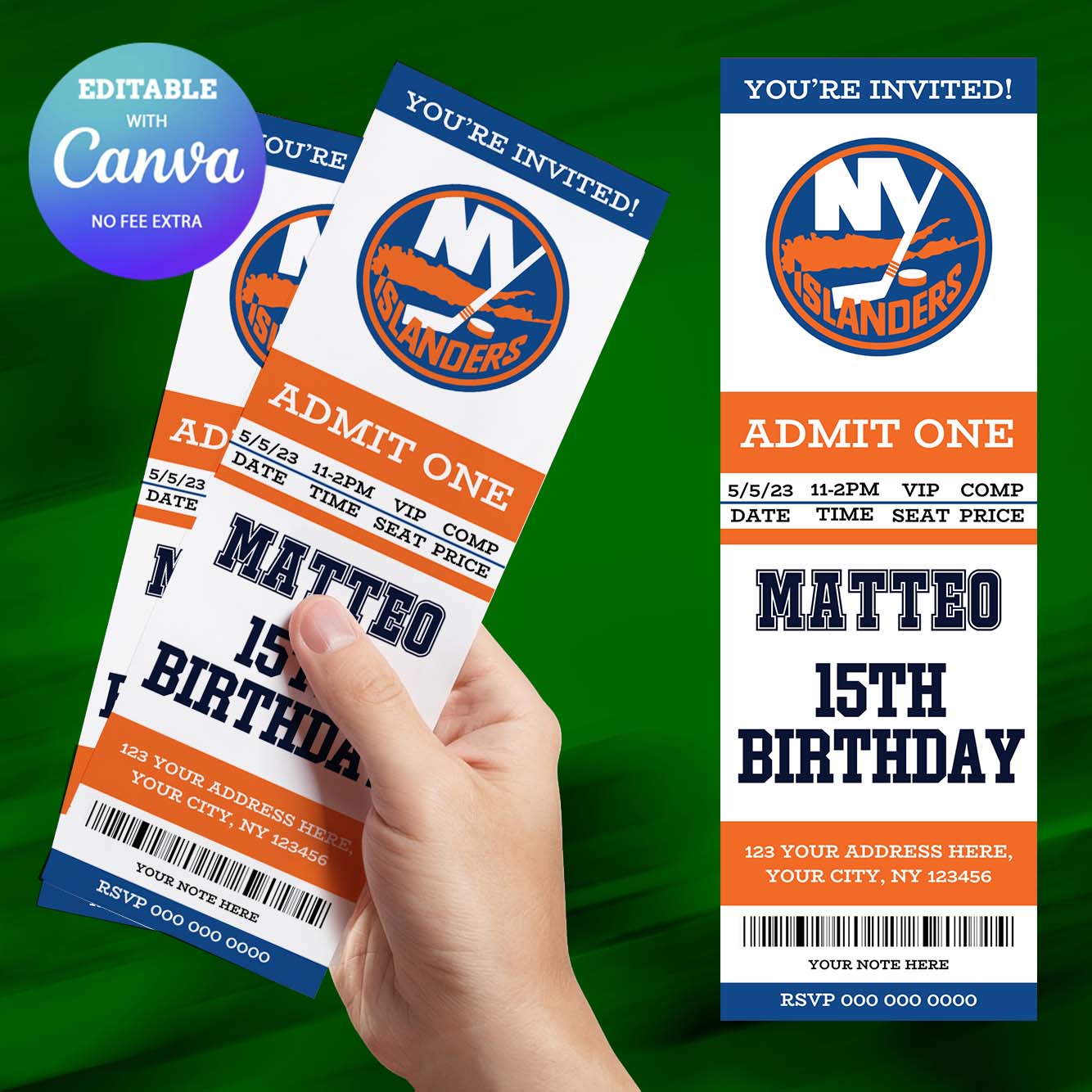 New York Islanders Birthday Invitation, Hockey Birthday Invitation Canva Editable
