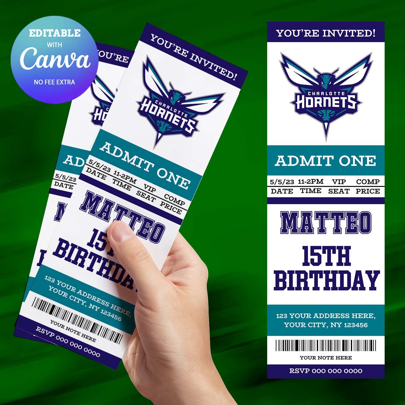 Charlotte Hornets Birthday Invitation, Hockey Birthday Invitation Canva Editable