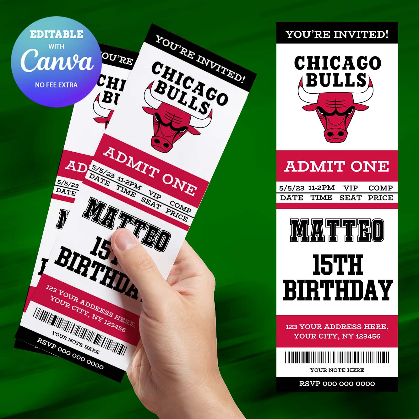 Chicago Bulls Birthday Invitation, Basketball Ticket Birthday Invitation Canva Editable