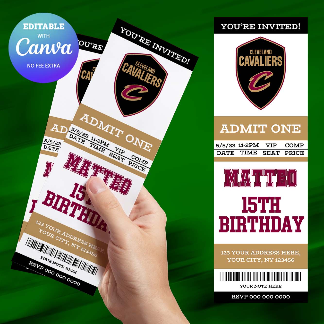 Cleveland Cavaliers Birthday Invitation, Basketball Ticket Birthday Invitation Canva Editable