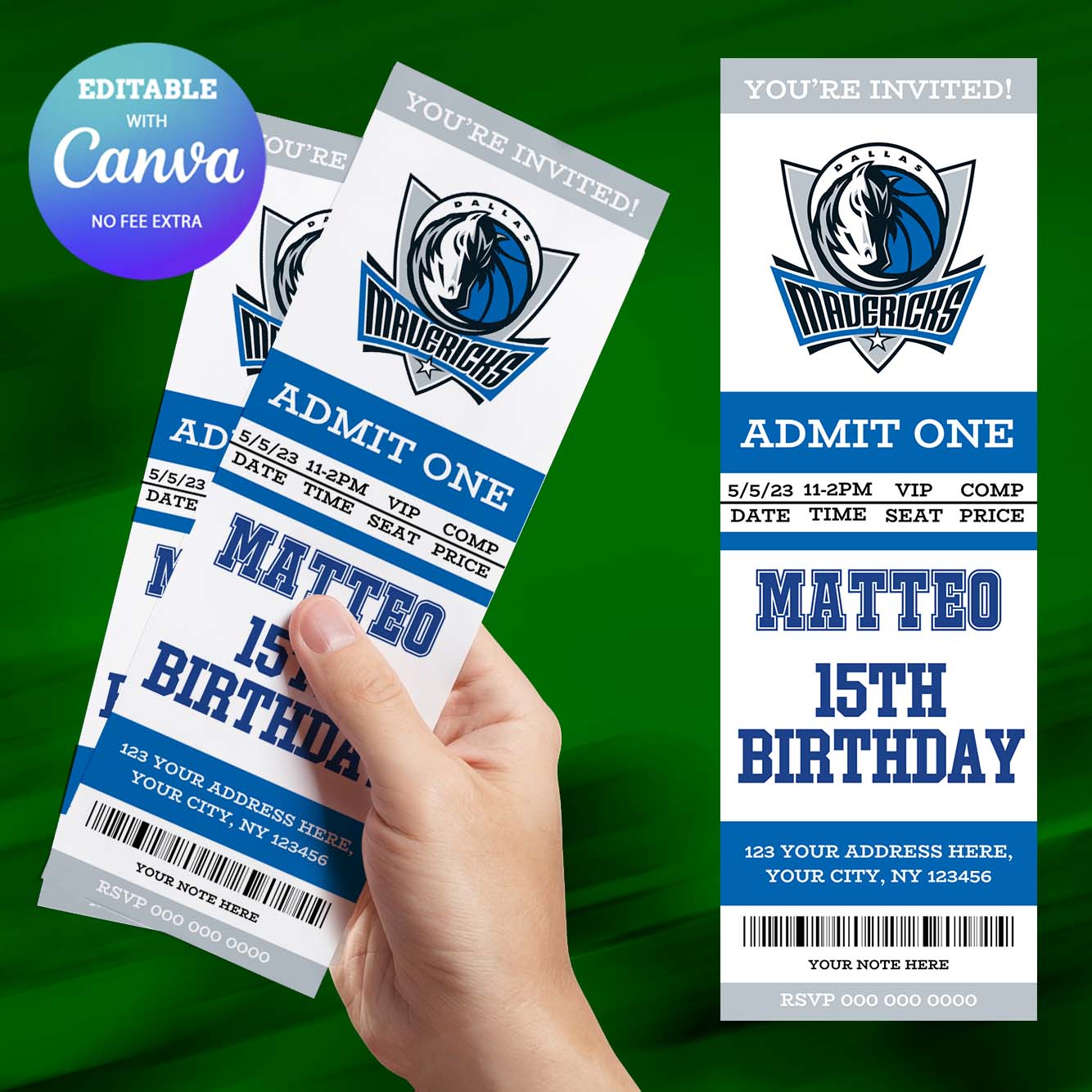 Dallas Mavericks Birthday Invitation, Basketball Ticket Birthday Invitation Canva Editable