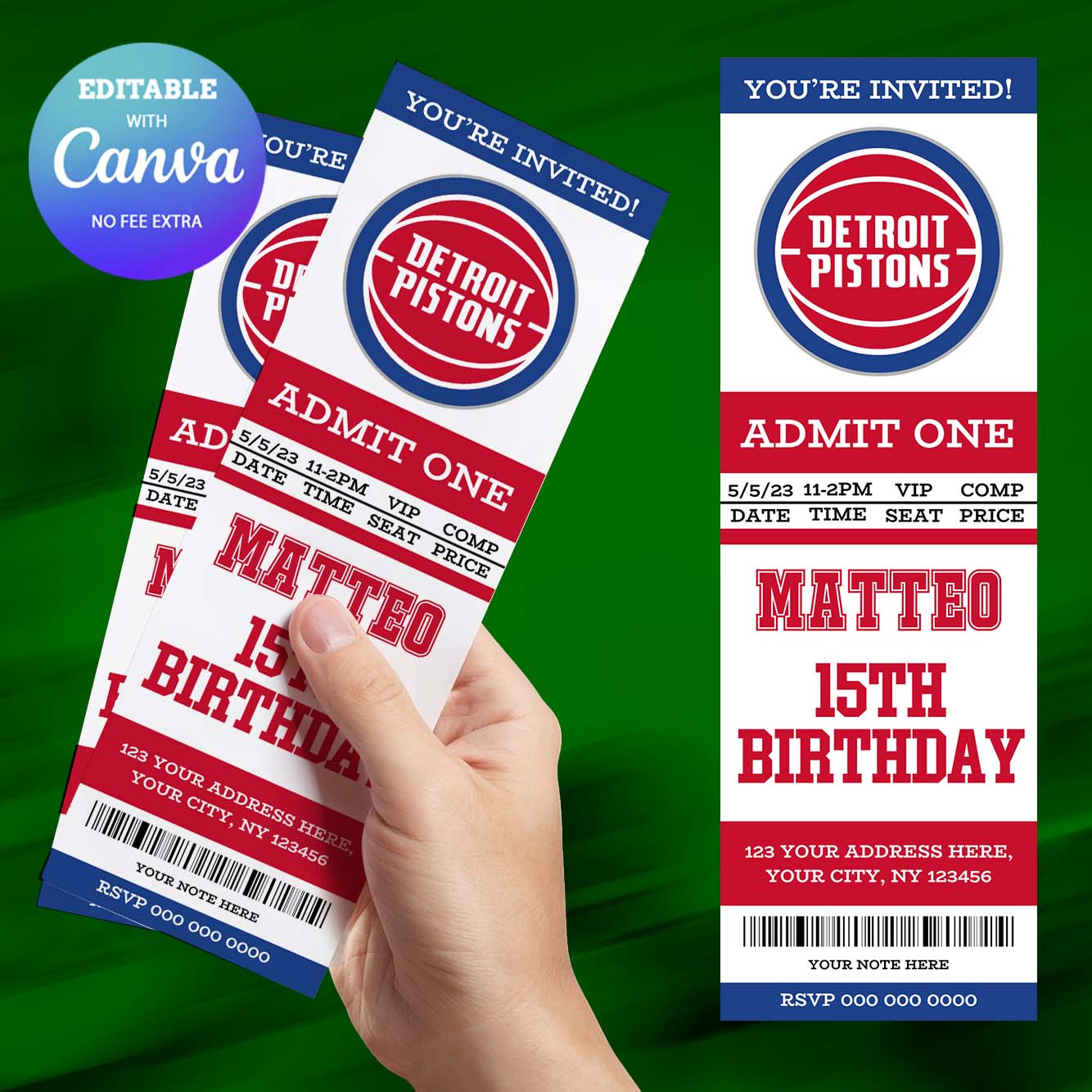 Detroit Pistons Birthday Invitation, Basketball Ticket Birthday Invitation Canva Editable