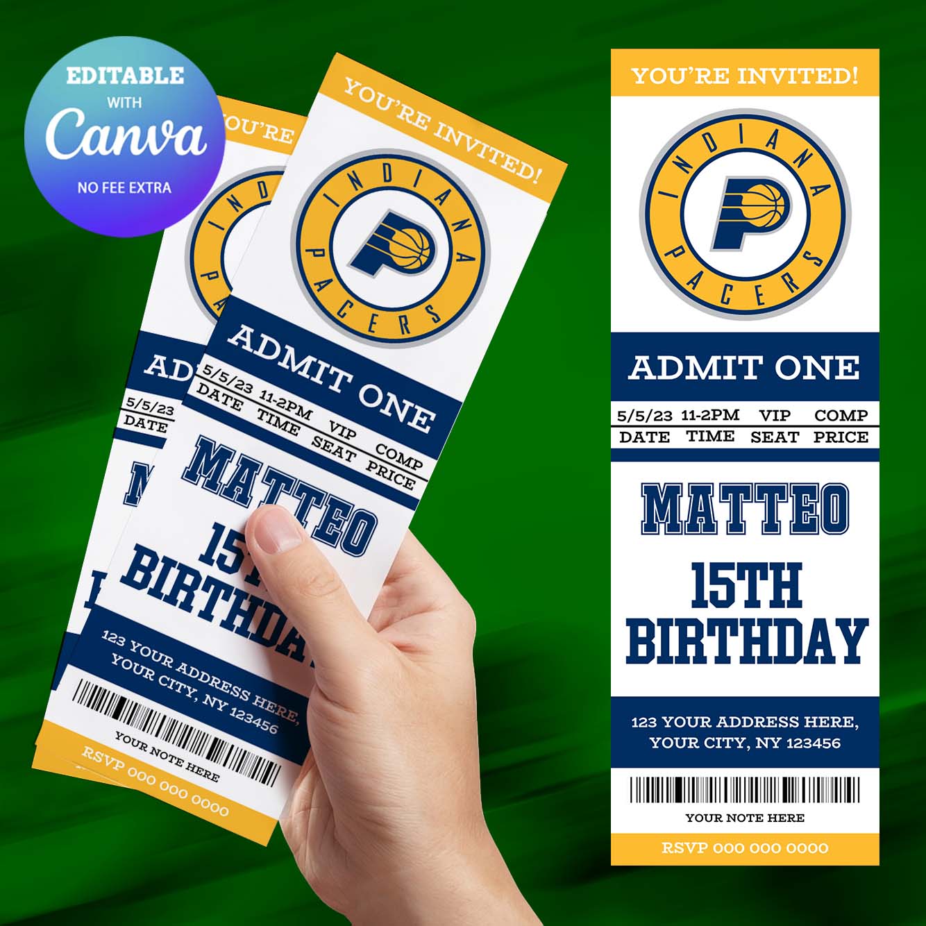 Indiana Pacers Birthday Invitation, Basketball Ticket Birthday Invitation Canva Editable