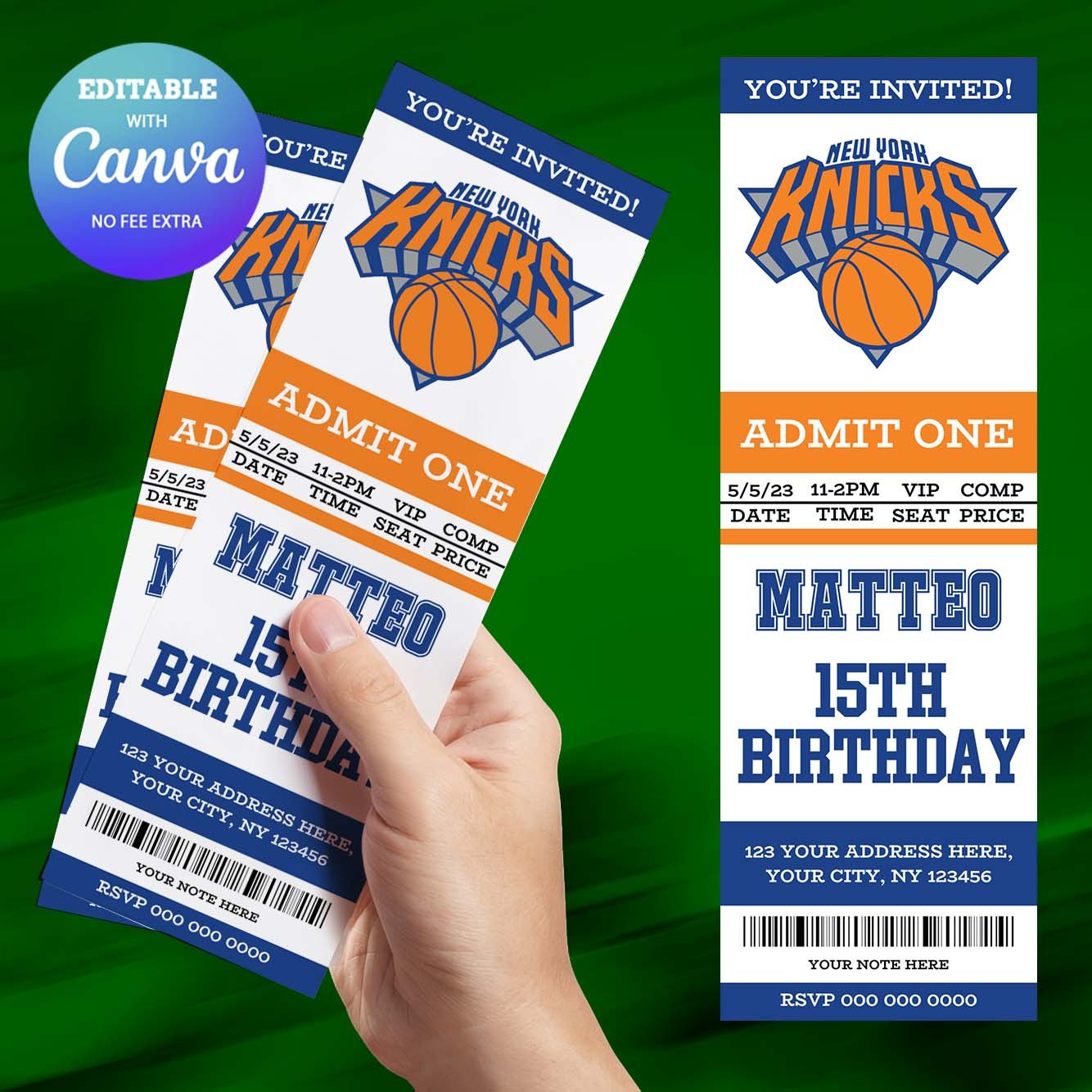 New York Knicks Birthday Invitation, Basketball Ticket Birthday Invitation Canva Editable