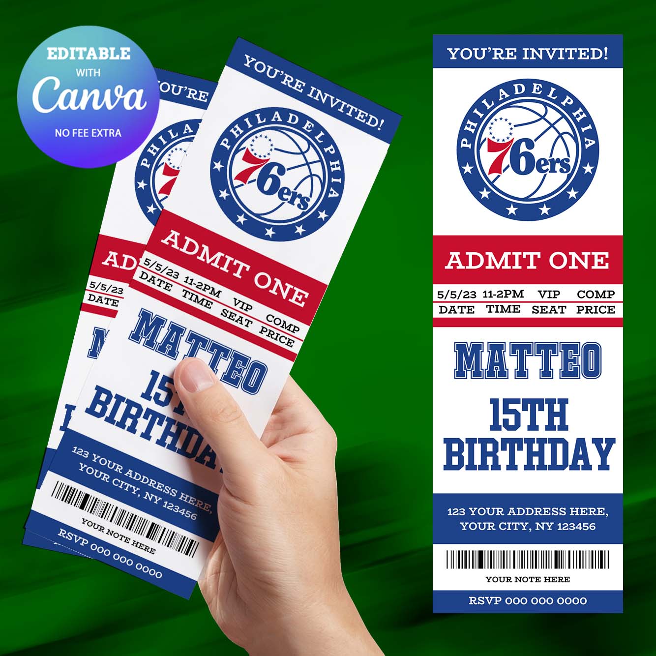 Philadelphia 76ers Birthday Invitation, Basketball Ticket Birthday Invitation Canva Editable