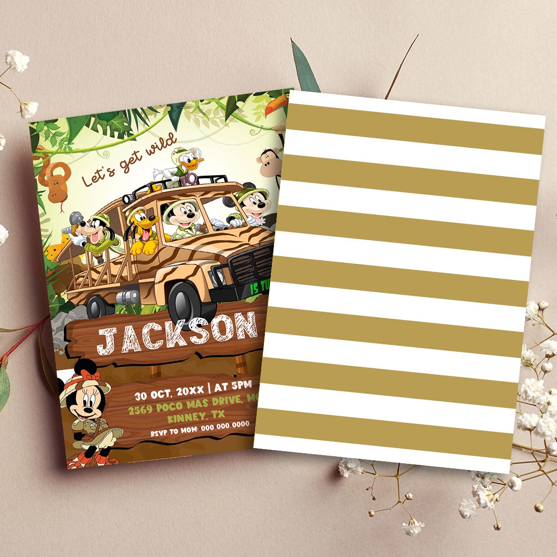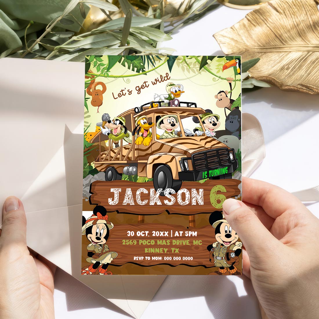 Mickey Mouse Safari Birthday Invitation, Minnie Mouse Safari Birthday Invitation Canva Editable Instant Download