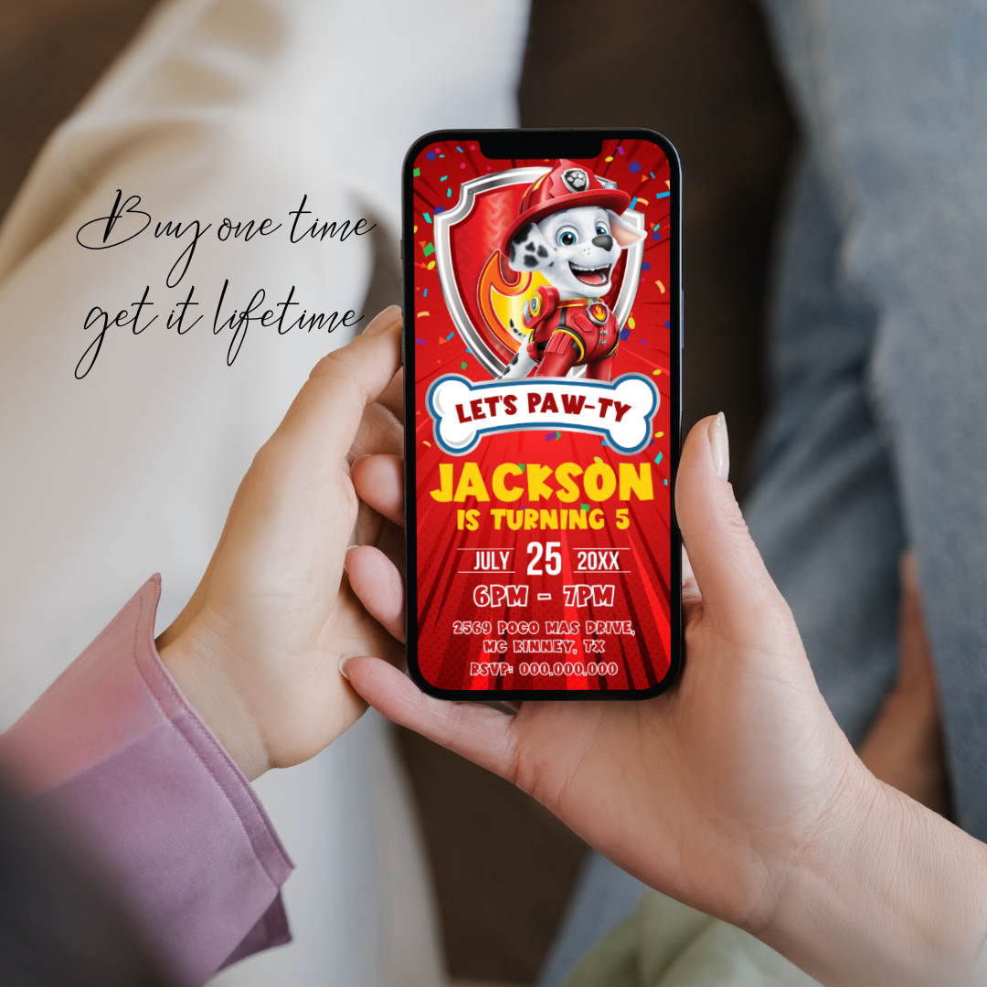 Paw Patrol Birthday Invitation, Marshall Paw Patrol E-Invite Birthday Invitation Canva Editable