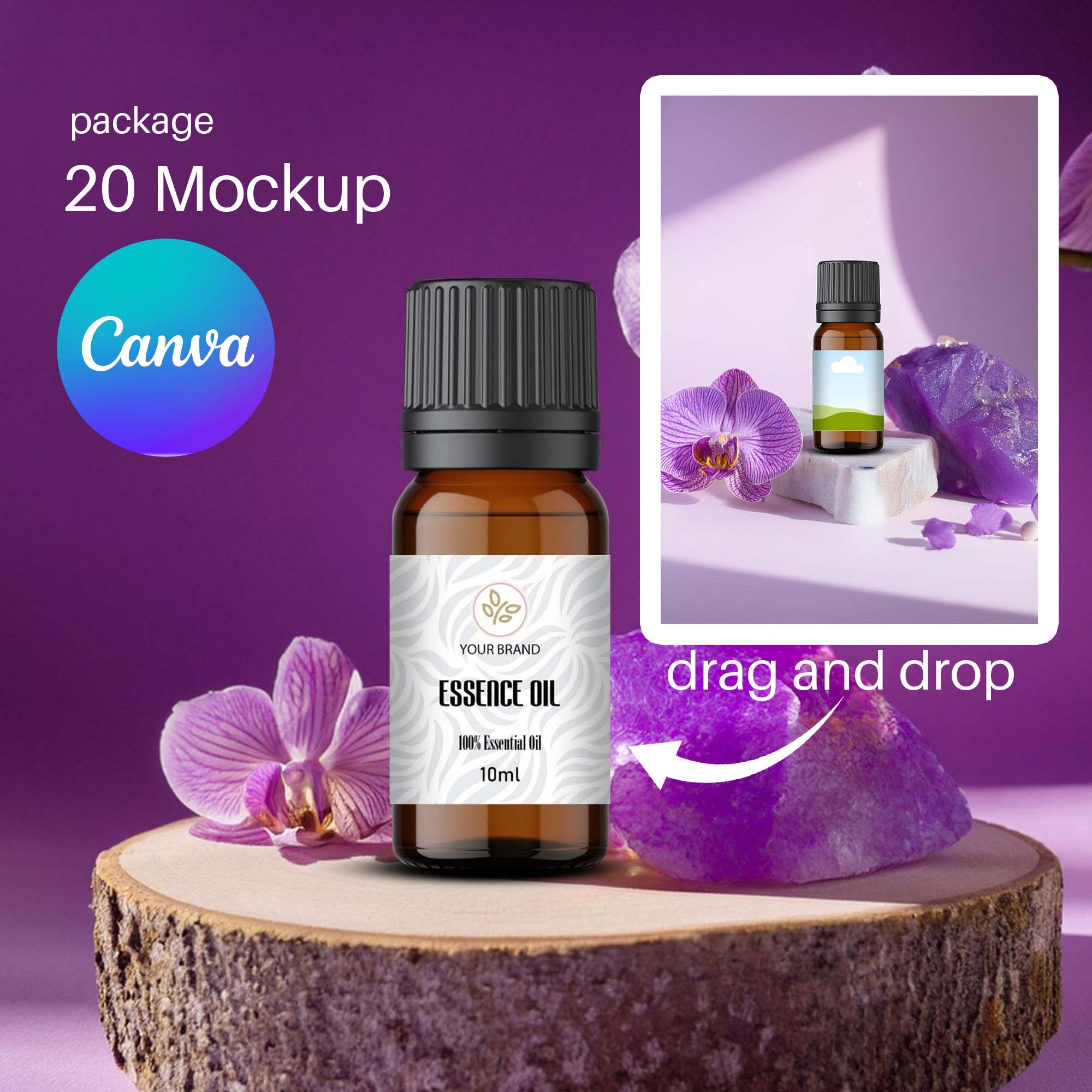 Dropper Bottle 10ml Mockup Orchard flavor, Amber Bottle Canva Mockup, Serum Bottle Mockup Natural and Fresh Themed Visuals and Marketing